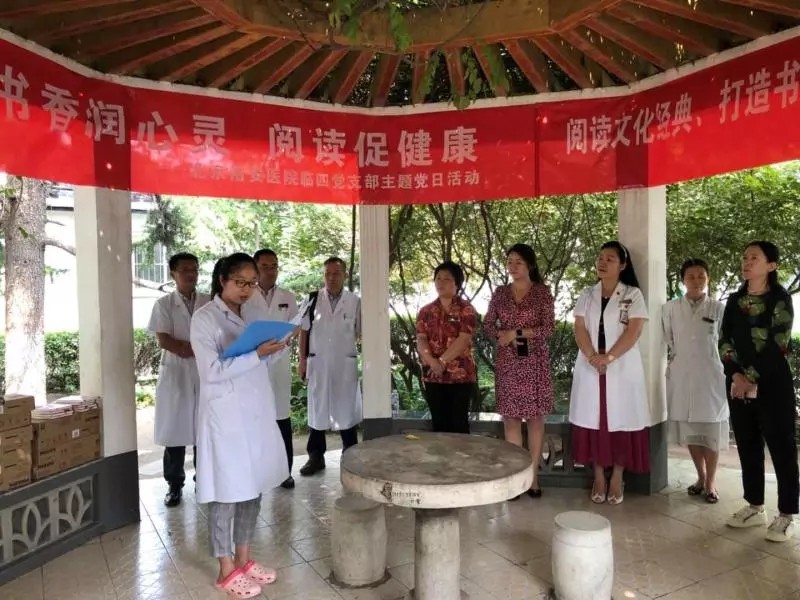 9月12日中午,在佑安医院凉亭内,正在进行一场别开生面的主题党日活动,此次主题党日活动“书香润心田 读书促健康”主题鲜明,紧紧围绕市医院管理局系统培育和践行社会主义价值观的“点亮美丽人生”全民乐阅读活动。临四支部党、工、团以及统战人员,全民参与,此次“阅读文化经典 打造书香佑安 ” 第二届悦读分享会,在一片祥和的氛围中进行着。