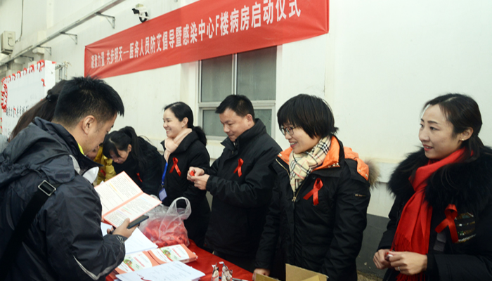 2018年11月28日下午,北京佑安医院感染中心病房外喜庆热闹,北京佑安爱心家园正在举办“凝聚力量、共步明天----佑安医者防艾宣传倡导暨F楼病房重新启用”公益活动。北京市医院管理局副局长边宝生、北京市医院管理局基础运行处处长龚文涛以及北京佑安医院院长金荣华、党委书记李玉梅、党委副书记向海平、副院长孙桂珍、工会主席刘香玉以及医务人员、志愿者参加了活动。