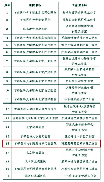 5月9日,北京市医院管理局对首批认定的20个护理工作室进行统一授牌。本次授牌的护理工作室,内容涵盖慢病管理、创面治疗、造口护理、中心静脉导管留置及维护、康复训练等多个领域。北京佑安医院张莉莉母婴阻断护理工作室榜上有名。