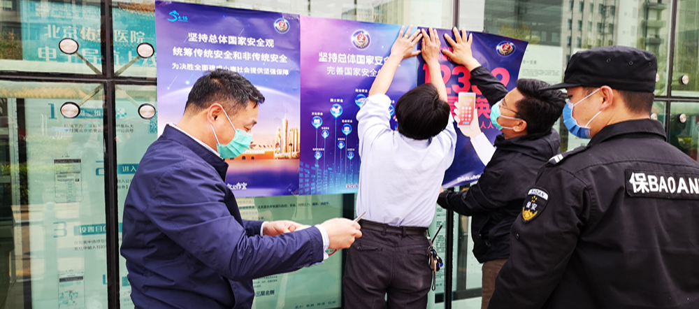 4月15日上午,在医院门诊楼、病房楼、行政楼等地张贴了宣传海报,利用网站、微信公众号等平台宣传“国家安全,人人有责”的意识,在内网OA设置国家安全知识考试,线上、线下多种方式相结合提醒医院职工在新冠疫情防控的特殊时期,注意生物安全和非传统安全,为夺取疫情防控的全面胜利创造安全稳定的环境。
