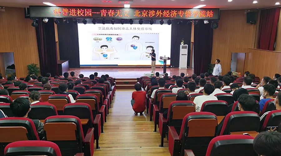 2020年9月23日,北京佑安爱心家园“恬园防艾宣讲团”受北京涉外经济专修学院邀请,为学院200余位师生开展预防艾滋病及新型冠状病毒科普宣教活动。宣教活动开始前北京涉外经济专修学院团委副书记周常在向同学们介绍了本次活动的目的意义和专家领导。