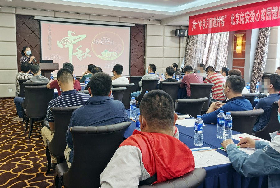 2020年9月25日,北京佑安爱心家园在北京商务会馆举办“中秋月圆邀好客”——北京佑安爱心家园健康讲堂暨中秋慰问活动。活动特别邀请了丰台区疾病预防控制中心性病艾滋病科王欣心科长、肖丹朝老师;中国沟通分析协会副理事长、清华大学继续教育学院特约讲师、中国心理学会注册心理师徐丽丽老师;北京佑安医院感染一科田亚坤医师;感染一科驻四川省凉山州美姑县郭娜医师;感染一科一病房、二病房护士长;爱心家园工作人员关欣、李超以及志愿者等人共同参加了此次活动。