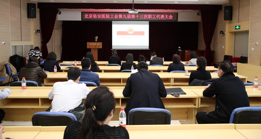 2021年2月5日下午,首都医科大学附属北京佑安医院工会在医院党委的关心指导下,召开了第九届第十三次职工代表大会。按照北京市新冠疫情的防控要求,会议采取线上、线下相结合的方式进行。来自13个分会的分会主席在医院报告厅主会场,与来自各部门的84位职工代表共商医院发展大事。本次会议由工会主席刘香玉同志主持。