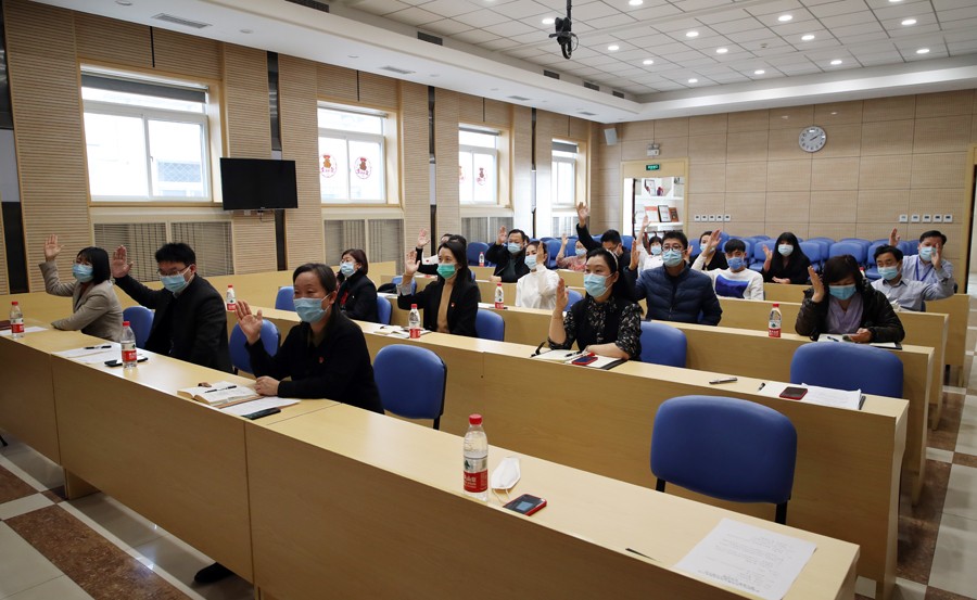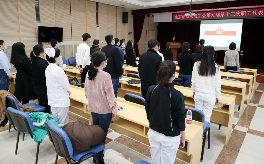 首都医科大学附属北京佑安医院工会第九届第十三次职工代表大会在雄壮的《国际歌》声中胜利闭幕。