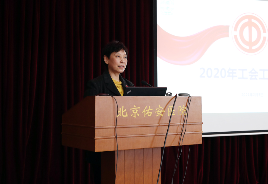最后,党委委员、纪委书记任静同志代表医院党委做了总结讲话,首先肯定了医院工会2020年的工作,同时提出了3点工作要求:一是2021年是“十四五”的开局之年,既是机遇,也是挑战。全院干部职工要在医院党委的领导下,在医院工会的引领带动下,对医院今后的发展积极献计献策;二是医院工会作为职工温暖的家,工会干部要发挥职责,主动倾听职工心声,发挥好桥梁纽带作用,做好职工的娘家人;三是工会要进一步围绕医院中心科学化、精细化开展工作,凝聚职工,发挥好引领作用。要深入工作,团结一心、凝聚力量、发挥优势,为医院更好的发展贡献力量。