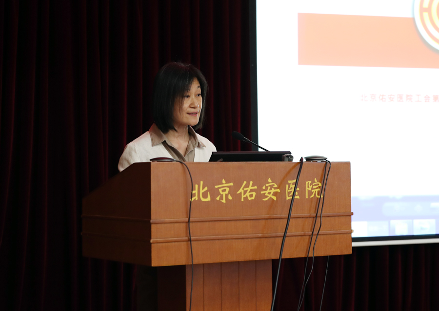 副院长蔡超同志宣读了关于《2020年北京佑安医院工会优秀工会干部和工会积极分子名单》的表彰决定。