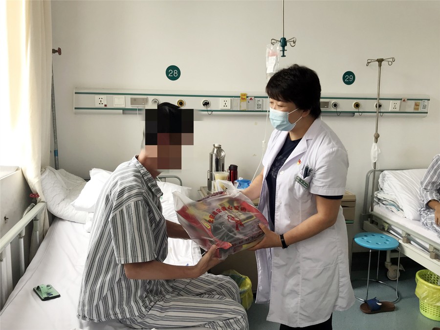 9月16日下午,北京佑安爱心家园张彤秘书长带领爱心家园工作人员和志愿者来到感染与免疫医学科,代表爱心家园全体人员向住院患者送去节日的祝福,让他们在欢乐、祥和的气氛中度过一个温暖的中秋节。