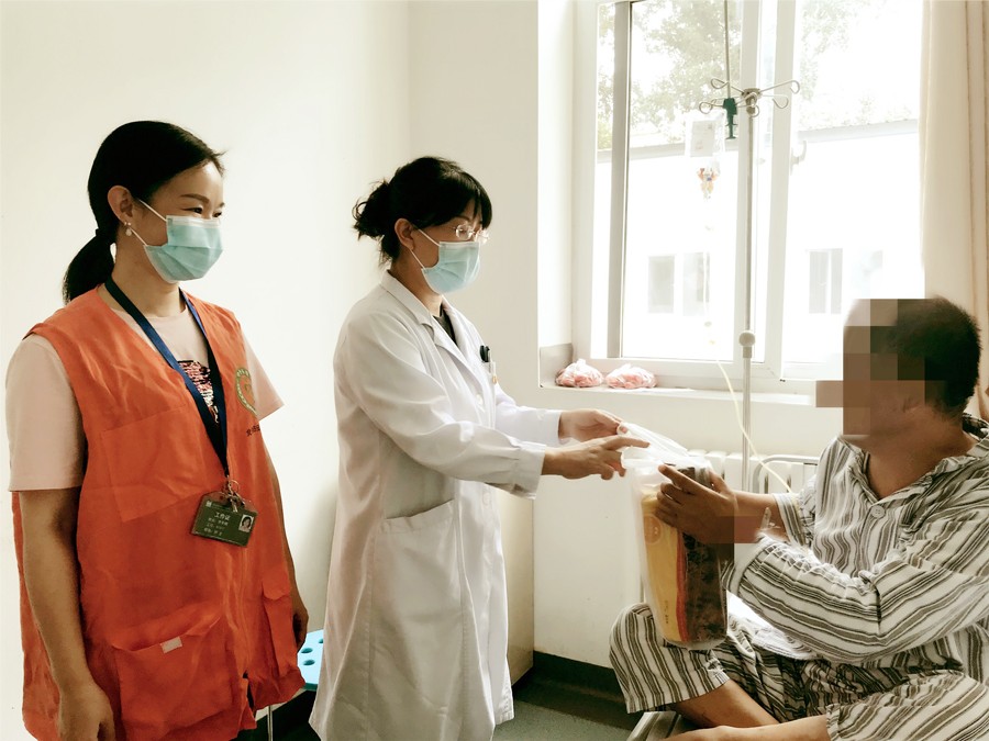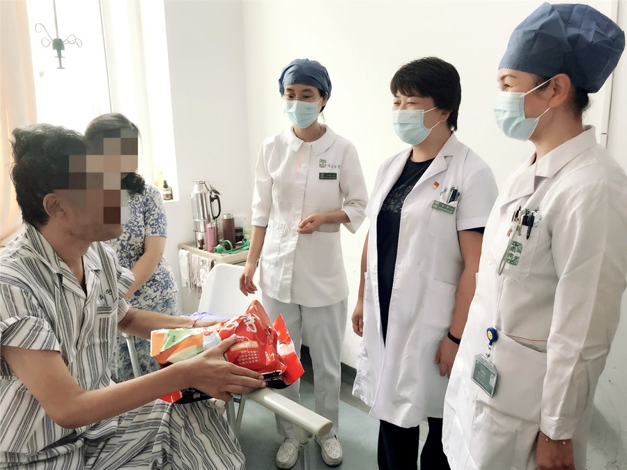 张彤秘书长和爱心家园的工作人员带来慰问品,同时送上“中秋快乐,祝您早日康复”的祝福。每到一间病房,都仔细地询问病人的治疗、康复情况,鼓励他们安心休养,争取早日康复。住院患者接过爱心家园递来的慰问品露出惊喜的笑容,纷纷表示感谢。亲切的问候、真诚的祝愿、人文的关怀,让患者感到了医院的关爱和温暖。这种爱的传递,让他们真切感受到亲人的关怀与家的温暖,对爱心家园及感染与免疫医学科热情周到的服务赞不绝口。
