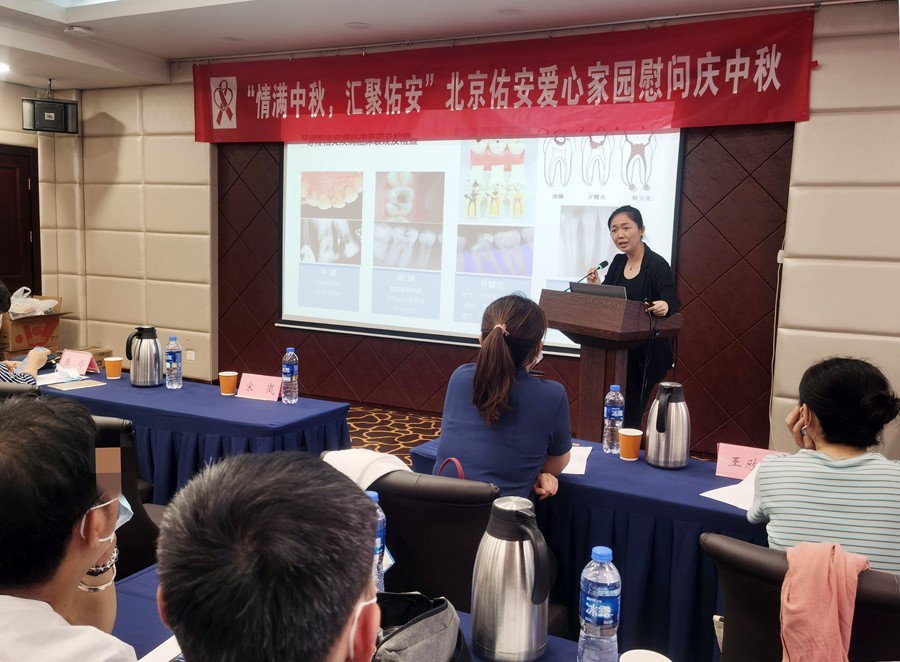 2021年9月20日正值爱牙日,在日常生活中部分HIV感染者免疫力低下,常常受到口腔并发症的困扰。因此,特别邀请佑安医院五官中心口腔科郭莹主任,带着大家了解牙齿常见的问题及HIV相关的口腔并发症,并表示欢迎有口腔问题的HIV感染者就诊,可以为其提供诊疗,解除了感染者们的后顾之忧。培训环节结束后,参会人员纷纷向两位专家就自己所关心的问题进行了咨询。