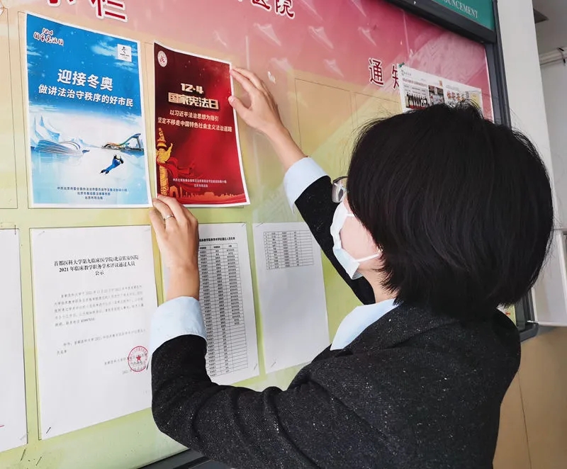 2021年12月4日是第八个国家宪法日,第四个“宪法宣传周”,也是“八五”普法启动之年。佑安医院以国家宪法日、宪法宣传周为契机,重点围绕学习宪法、民法典以及与推动医院高质量发展密切相关的法律法规等,利用医院内部刊物、宣传栏、电子显示屏、门户网站、微信、微博等载体,通过张贴宪法海报、播放宪法公益广告、展示宪法宣传口号、开展法律知识答题等活动,推动宪法精神和法治理念走进日常生活,走入医院干部职工及就医群众。