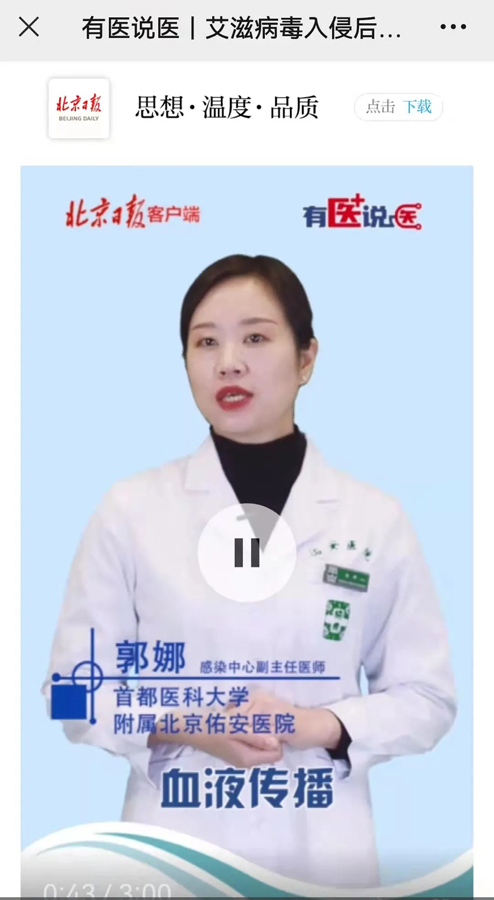 北京佑安医院作为艾滋病诊治的医疗机构,广大医护人员在诊疗的同时,更加注重健康传播,通过央视新闻、新华网、人民健康、健康报、凤凰卫视、北京卫视、光明网等平台,让科学的防治艾滋病的知识飞入寻常百姓家。为此,近日在各媒体各平台,佑安医护人员把防艾知识讲给您听。