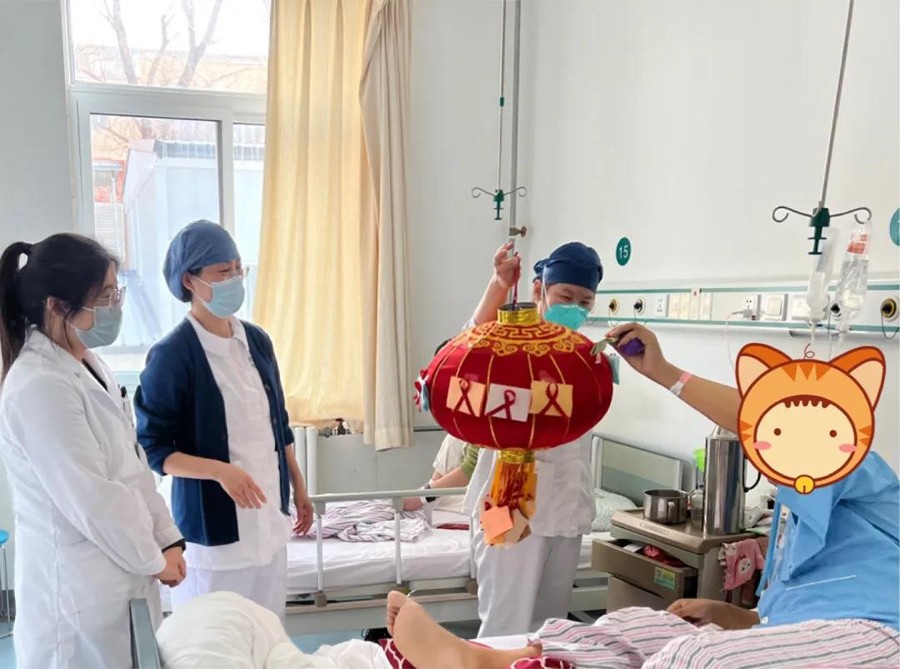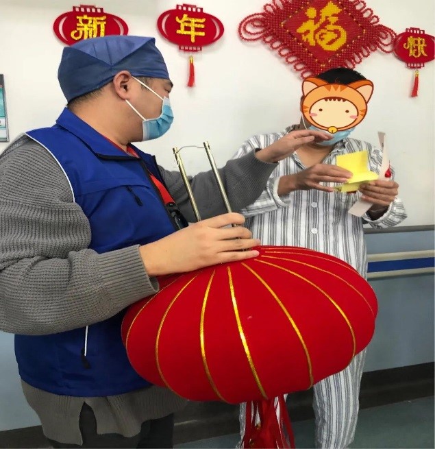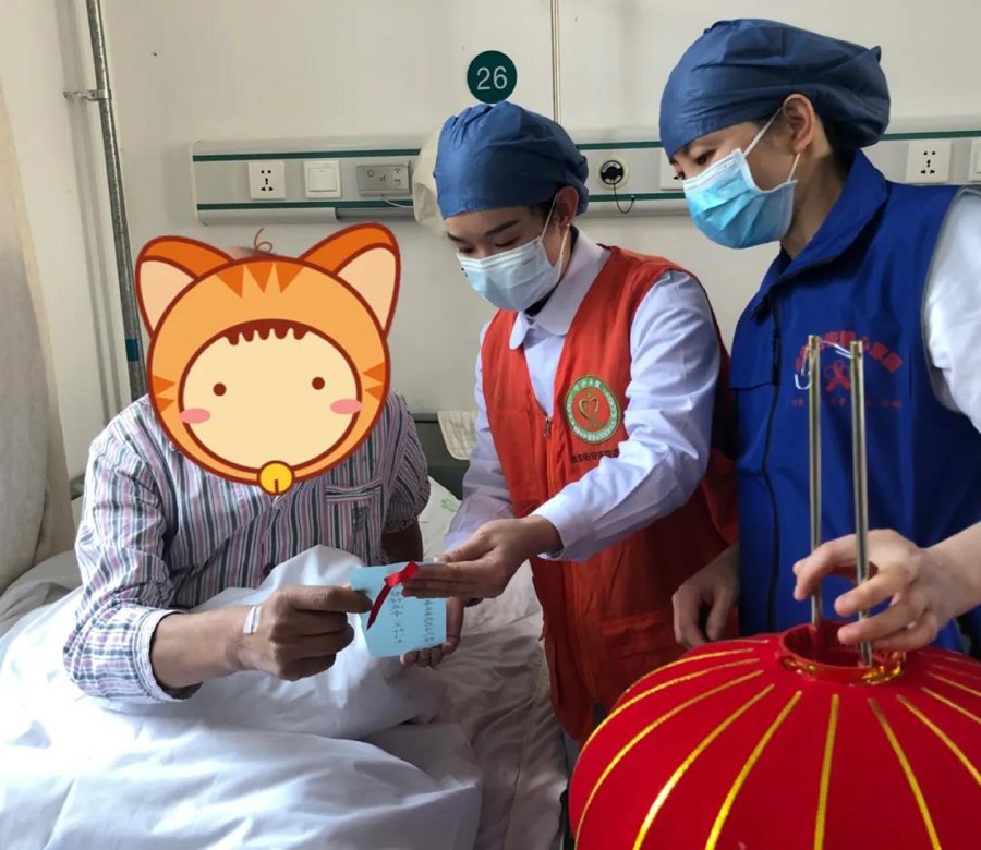元宵节是家家团圆、亲人相聚的时候。在感染免疫科病房,患者大多病情危重,且,由于疫情原因,全部取消家属陪护,对于患者来说,在忍受疾病痛苦的同时还要承受离别的伤心。