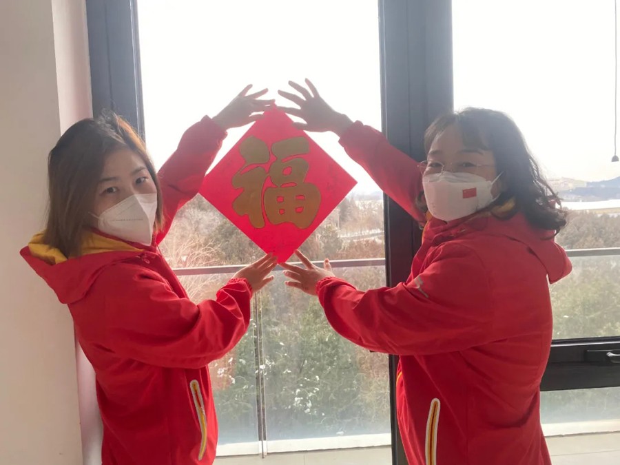 这届冬奥会中国传统新年不期而遇,可谓双喜临门,为了让外国客人感受到中国人民的热情,了解中国传统文化,感受新春佳节的喜庆气氛,医护人员特意为外国客人准备了新年礼物,扈彩霞医师和牛欣月护士买来了可爱的小老虎、窗花、年年有鱼等小挂饰,孙小清拿来了科室医生写的福字。可爱的礼物装在精美的礼品袋内,逐一送给客人。