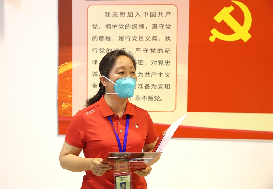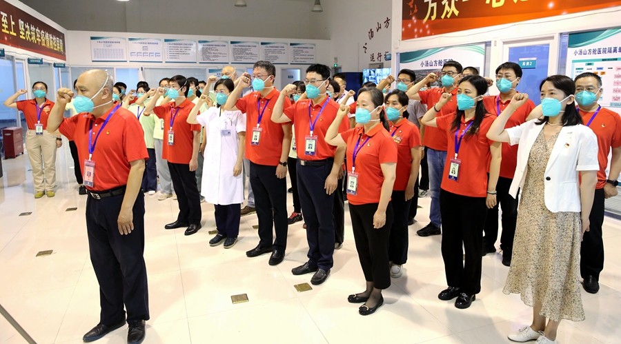 七一前夕,小汤山方舱医院临时党委举办了“跟党走 战疫情 展风采”主题党日活动,纪念建党101周年。临时党委书记郑东翔、临时党委副书记马迎民、临时纪委书记任静、临时党委委员、副院长姜悦、临时党委委员、副院长胡中杰、副院长蔡超、临时党支部书记、各部门主任、党员干部代表参加了活动,临时纪委书记任静主持活动。