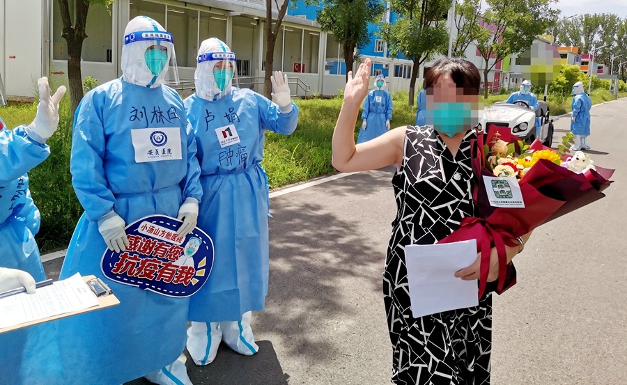 2022年7月9日上午,张女士手捧鲜花在医护人员的陪同下离开小汤山方舱医院,成为方舱医院最后一例康复出院的感染者。至此,小汤山方舱医院实现“患者零病亡、医护人员零感染”的“双零”目标。全部感染者出院后,小汤山方舱医院将根据疫情形势,做好随时应急启用、保障救治的准备。