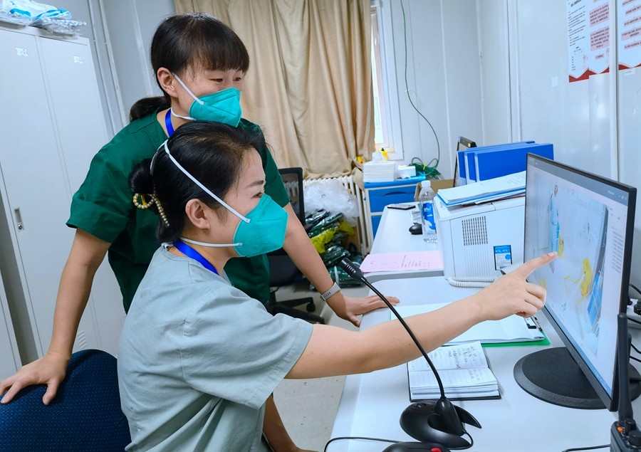 在医疗救治工作中,充分发挥中西医结合优势,坚持中西协同、辨证施治;开展分级查房,多学科会诊。在院感防控方面,坚持三级管理,通过“鹰眼监控”系统,创立了指挥部感控组和隔离单元感控专员感控风险位点双监督制度,形成24小时双岗监控模式,确保实现医护人员零感染。