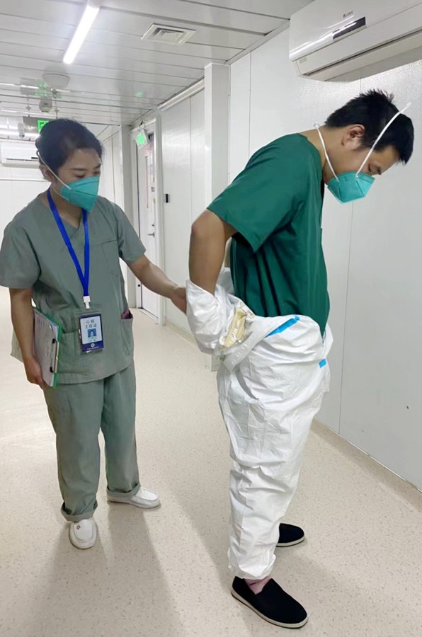6月5日,我结束了在舱内隔离区5周的工作,穿着厚重的防护服,鏖战酷暑,直面病毒,保护战友,磨练了我坚强的意志。更重要的是,在这里的感控经验让我增长了才干。也因此,在解除隔离后,医院对我又一次发出召唤。若有战,召必回,战必胜。这是我对自己的要求,我毫不犹豫地服从医院的安排重返岗位。