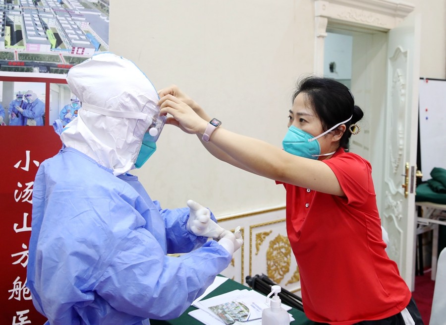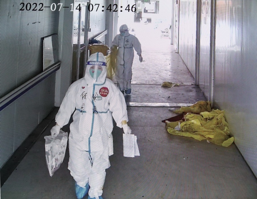 经过两周的休整,我重新上岗。这一次不同的是,我被分配到小汤山方舱医院运行指挥部的党群工作部培训组,对进舱人员进行穿脱防护服的培训,同时担任医疗感控部感控专员,对各个区域的视频进行监督及反馈。