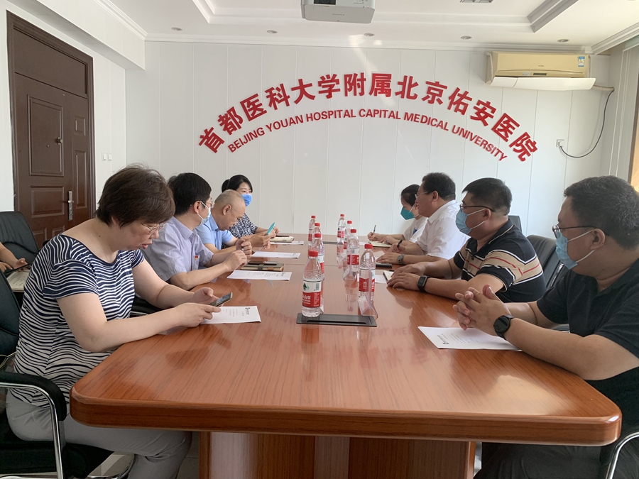 2022年8月5日,佑安专科医疗联盟成员单位固安县总医院院长邱运东带队,一行4人来到北京佑安医院交流座谈。北京佑安医院党委副书记、院长马迎民、副院长胡中杰以及相关科室主任出席座谈。