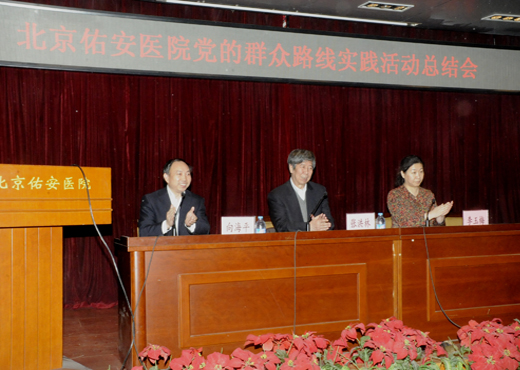 2月18日下午,北京佑安医院党委在报告厅召开党的群众路线教育实践活动总结大会,市卫生局第四督导组全体成员、院领导、近三年退出领导班子的老同志、中层干部、党支部委员等150余人参加会议。