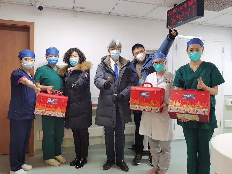 1月21日除夕,北京佑安医院党委书记郑东翔、院长马迎民、党委副书记、纪委书记任静、副院长向海平、副院长孙桂珍、副院长张永宏、总会计师张春妮、工会主席刘香玉带领部分职能部门负责人向坚守在医院各工作岗位上的职工拜年,为他们送去了新春的祝福。
