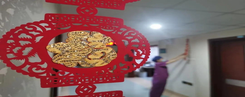 新春前夕,北京佑安医院感染与免疫医学科在张彤主任、郭彩萍主任、汪雯主任、马建红护士长、吴冬霞副护士长的带领下,全科医护人员带着新春的祝福走进病房,把新春的问候和祝福带给患者。患者们脸上洋溢着幸福的微笑,更有患者家属主动参与到科室“张灯结彩”的环节,看着走廊里挂起的红灯笼,好多患者都在病房门口感叹:“这就对了,节日的氛围一下就有了!”“在这儿过年也很幸福,有主任的关怀,护士小姐姐们悉心的照料,我们太安心了!”