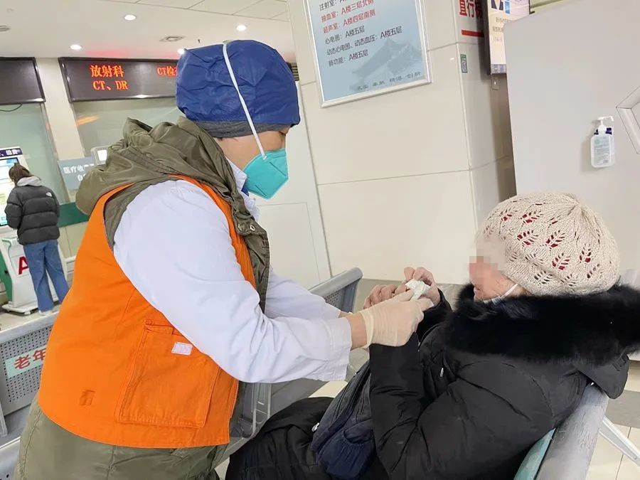 时间回到2023年1月29日上午11点,北京佑安医院门诊部张勇勇护士长在巡检时发现一位患者瘫倒在电梯旁,导医护士李迎华老师也闻讯赶到,将患者搀扶到候诊椅上对患者进行生命体征监测,得知患者为了早晨抽血,头天晚没有进食,护士长立即找来了食品,李迎华护士为患者端来了开水,照顾患者,直至患者症状完全消失后才将患者送出门诊,联系上家属,安全离开。