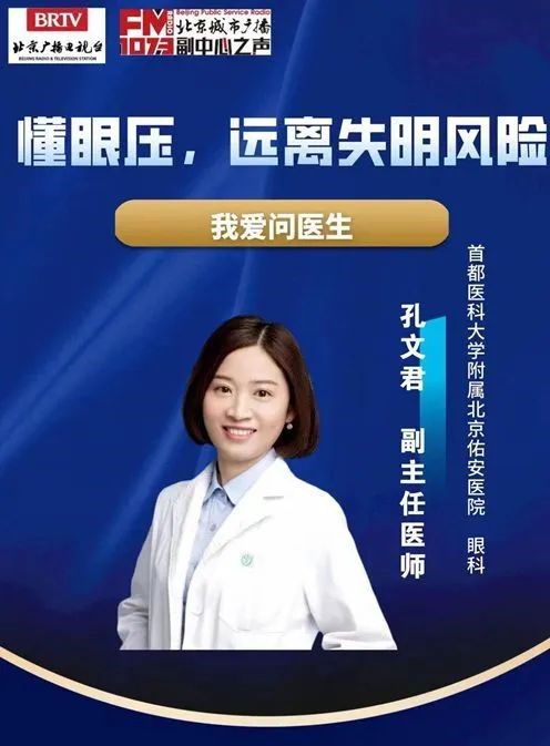 生活中的压力无处不在,我们的眼睛也有着压力,而这种压力对眼睛的健康至关重要,它就是“眼压”。眼压检查是对于眼睛状态评判至关重要的指标,懂眼压可以远离失明风险。日前,北京佑安医院五官中心眼科副主任孔文君副主任医师在由北京城市广播副中心之声与北京市卫生健康委员会宣传教育中心联合制作播出的《我爱问医生——向幸福出发》中就眼压与眼健康进行了讲解。
