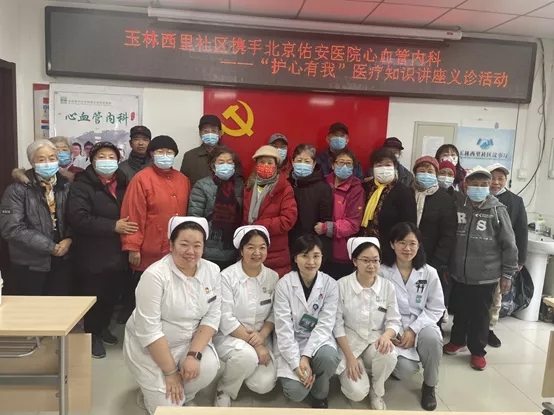 2021年12月10日下午,北京佑安医院心血管内科团队在右安门街道玉林西里社区,开展“护心有我”医疗知识讲座义诊活动。