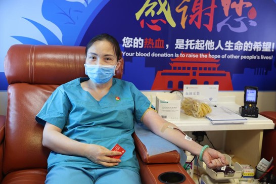 在献血现场,献血人员有多次献血的老党员,也有初次奉献爱心的年轻人。无偿献血者姜菲菲来自临检中心,这已经是她第13次献血了,谈到献血的初心,她说,“作为一名医务工作者,特别理解患者对生命的渴望,医生救治患者的不易,想通过自己奉献一点爱心,支持患者、支持医生、支持生命,给生命更多的希望!”同样来自临检中心的还有冯霞、王蕊、袁星星,都是多次参与无偿献血,坚定的眼神,紧握的拳头,她们用自己的实际行动践行着医者的大爱与初心,用自己的热血为更多的生命点亮延续的希望。涓涓热血汇入血袋,滴滴鲜血传递爱心,现场洋溢着感动与温暖。