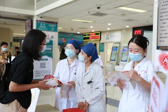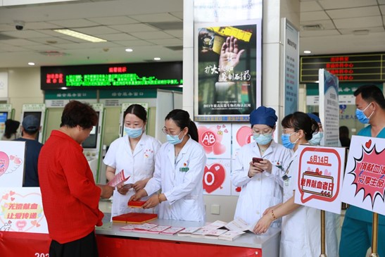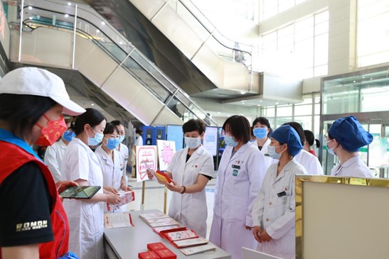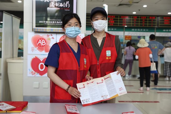 北京佑安医院在门诊楼一层设立无偿献血主题宣传台,对无偿献血知识、献血流程、用血政策等提供咨询、宣传服务。活动现场,来自临检中心党支部、工会社工医患党支部的党员志愿者们耐心为大家讲解献血常识,向就诊患者及家属发放宣传材料,呼吁更多的力量参与无偿献血,用爱心与热血给社会带来更多温暖。志愿者们的热情宣传与讲解吸引了众多的群众前来咨询了解,志愿者们一一为大家详细解答。丰台区卫生健康委医疗保障科(献血办)吕梅琴老师、佑安医院工会主席刘香玉一行对志愿者们的工作给予了高度的赞扬与鼓励,希望通过大家的努力,彰显无偿献血公益力量,营造有利于无偿献血健康发展的社会氛围。