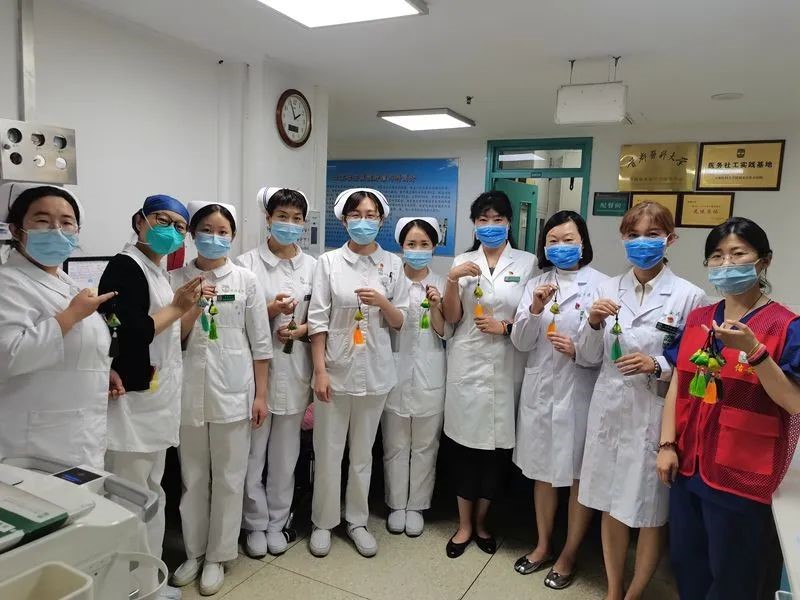 活动中,医务社工将参与活动患者制作好的香囊送给其他住院患者,将战胜疾病这一信念传递给他们。工会社工医患党支部的党员们为病房医务人员送上祝福,感谢每一位医务人员的辛苦付出。