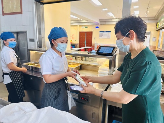 为了全面促进职工饮食健康,增强职工食堂管理的透明度,不断提高饭菜质量,2023年6月25日上午,北京佑安医院伙食委员会在工会主席刘香玉的带领下,来到医院职工食堂进行现场督导检查。