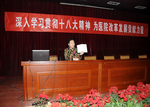 12月4日下午,北京佑安医院按照院党委制定的学习贯彻十八大精神学习计划,在报告厅组织党员干部进行《深入学习贯彻十八大精神为医院改革发展贡献力量》学习专题辅导会。院党委书记李玉梅进行十八大报告和新党章导读,全院院领导、党员、中层干部、统战人士、职工代表近200余人进行了集中学习。