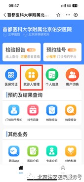 ③授权手机号后即可进入“首都医科大学附属北京佑安医院”自助服务小程序