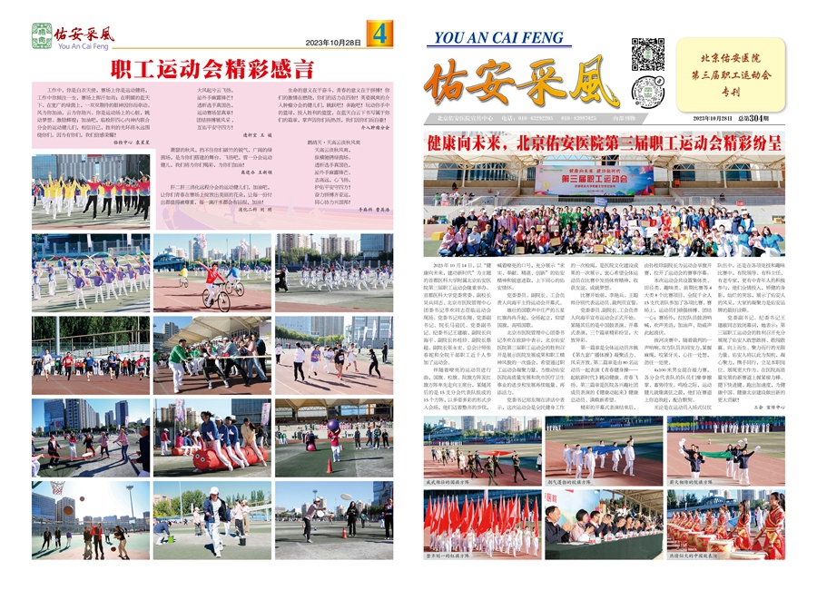 北京佑安医院院刊《佑安采风》第304期电子报新鲜出炉啦,这期报纸刊登了北京佑安医院第三届职工运动会的精彩瞬间,展现了干部职工意气风发、顽强拼搏的佑安精神。