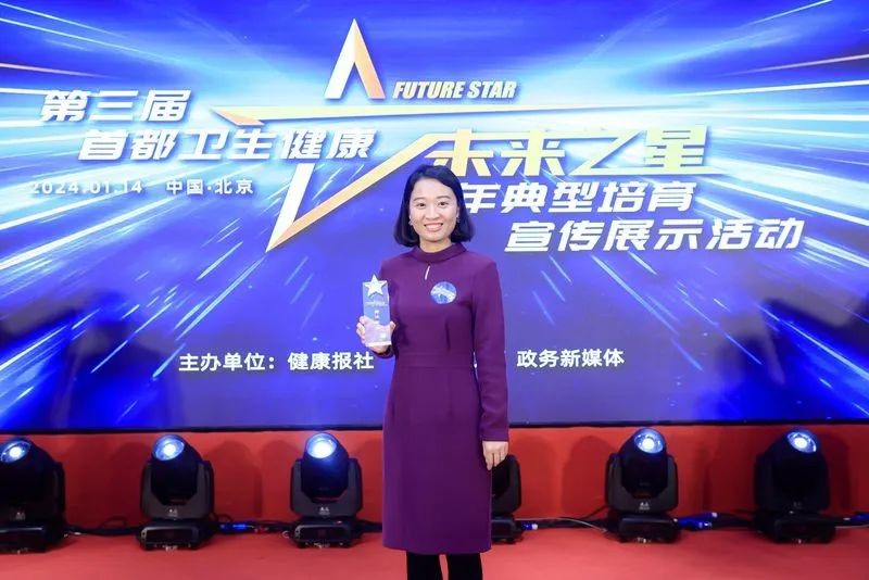 2024年1月14日,由健康报社、北京市卫生健康委“健康北京”政务新媒体联合主办的第三届首都卫生健康“未来之星”青年典型培育宣传展示活动在京举办。北京佑安医院五官中心眼科孔文君医生在首轮展示活动中真情讲述,脱颖而出,荣获“精诚之星”称号。