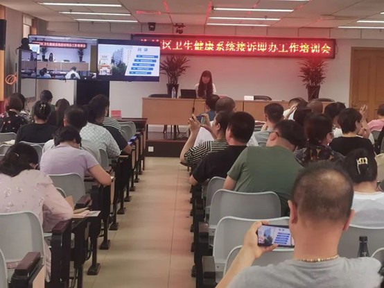 霍宏蕾主任在北京市卫生健康委、丰台区卫生健康委、东城区卫生健康委、海淀区卫生健康委、北京中医管理局及相关医疗机构开展接诉即办管理专题培训6场,参培人员600余人次,北京佑安医院接诉即办特色管理模式在卫生行业内广为传播,得到了业内同行的广泛认可和好评。