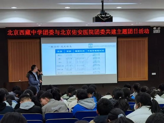 隆冬时节,寒意渐深。为做好冬季心脏健康知识宣教工作,近日,北京佑安医院团委组织相关专家开展了“青春卫健康,送知识进校园”主题团课活动。院团委书记蔺敬媛,心内神内党支部书记、心内科主任李艳兵,心内科青年医师陈洪群、青年技师曹爽共同走进北京西藏中学,为180余名来自雪域高原的西藏学子们送去“高原性心脏病”健康主题讲座。