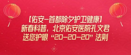 首都医科大学附属北京佑安医院五官中心眼科副主任、医务处副处长、副主任医师孔文君为您节日护眼送上“20-20-20”法则,提示所有网友欢度新春佳节,眼睛保健不能忘!