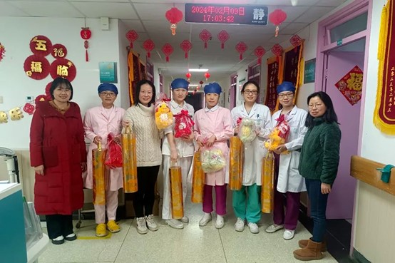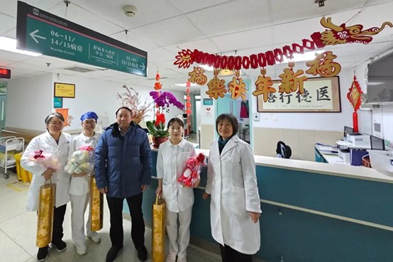 2月9日除夕,北京佑安医院党委书记郑东翔,党委副书记、院长马迎民,党委委员、副院长向海平,党委委员、副院长孙桂珍,党委委员、总会计师张春妮带领部分职能部门负责人向坚守在医院各工作岗位上的职工拜年,为他们送去了新春的祝福。