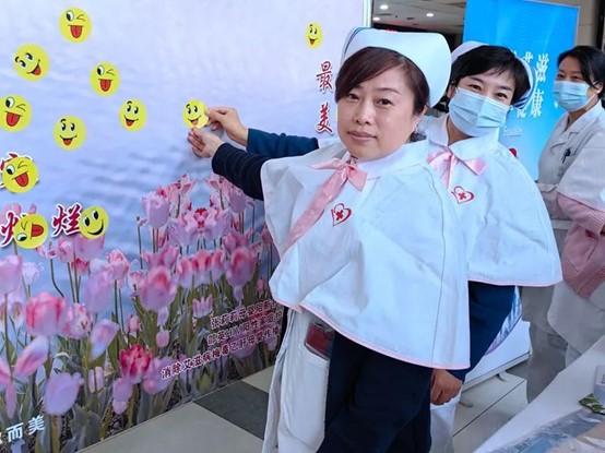 活动现场,一张张笑脸被医护人员和广大群众及患者亲手贴到背景墙上,一条条精美的丝巾送给患者和家属,祝福大家健康平安,笑靥如花。