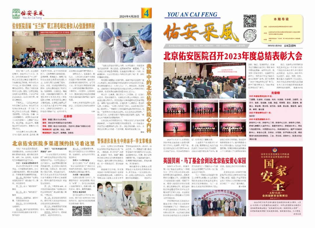 北京佑安医院院刊《佑安采风》第310期电子报新鲜出炉啦!这期报纸展示了医院在深入开展党纪学习教育、医院管理、医疗技术、重点学科、人文服务、科技赋能、健康传播、文化培育等各领域的工作以及服务群众的新举措、新成效等。以报为媒,搭建医患沟通的桥梁和纽带。