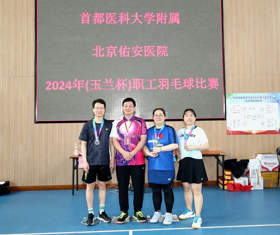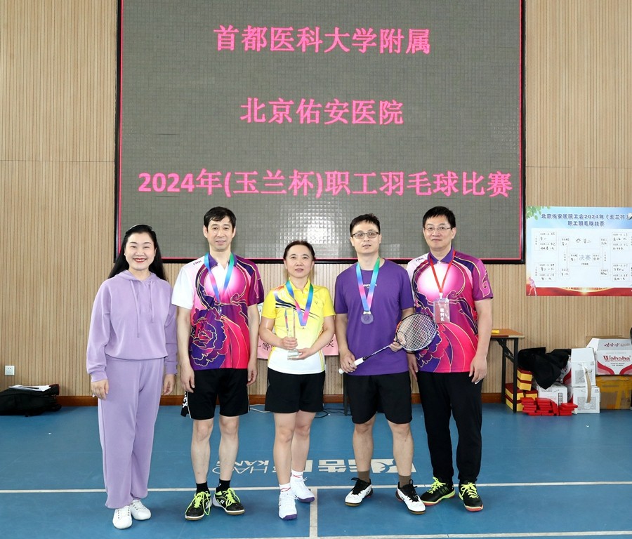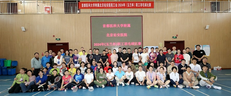 比赛为3v3团体比赛,分为小组赛、淘汰赛、总决赛、精英赛四个阶段。在半天的紧张赛程中,全体参赛队员积极备战、奋勇拼搏、默契配合,展现了良好的竞技状态和昂扬的团队斗志。伴随洁白的羽毛球在空中不断飞舞,佑安人用行动诠释了更快、更高、更强、更团结的奥林匹克精神。这场比赛也起到了切磋交流,绽放激情、分享技艺、增进友谊、交流感情的积极作用。各分会职工在比赛中焕发出了勇于争先、团结协作的精神。特别值得一提的是,参赛队员中有多名队员是下夜班后赶来参赛,还有的队员比赛完又继续加班。在球场上他们挥洒完汗水后又去为患者进行肝移植手术、去维护医院网络安全、去护佑患者健康平安。这些医护人员是我们身边最可爱可敬的人,大家克服困难,顽强拼搏,永不言败,是佑安人的优秀代表,用行动诠释了“求实、奉献、精湛、创新”的佑安精神。
