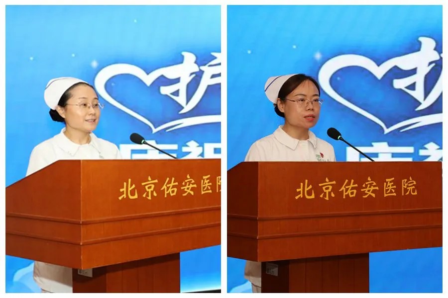 优秀护士代表王宏、优秀护理集体代表韩会山发表获奖感言。她们真切表达了从事护理工作以来的感受和体会以及对护理工作的无限热爱,对佑安这个大家庭的深厚感情。