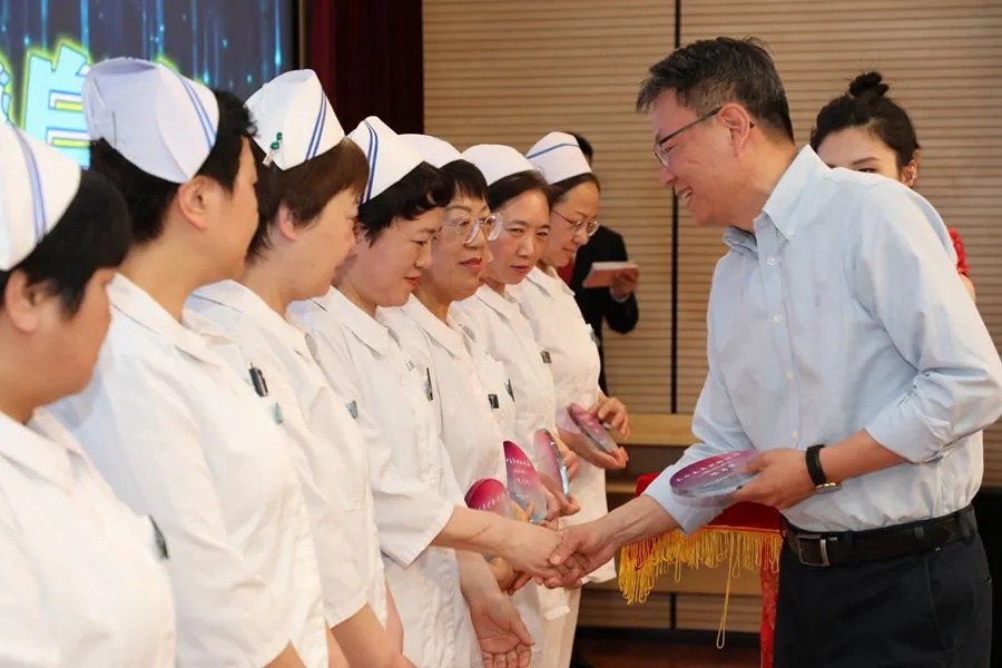 2024年5月9日,为了迎接第113个国际护士节,首都医科大学附属北京佑安医院隆重举办2024年“发展护士队伍,优化护理服务——5.12国际护士节”庆祝暨表彰大会。党委书记郑东翔,党委副书记、纪委书记王建敏,副院长向海平,副院长孙桂珍,副院长胡中杰,总会计师张春妮,副院长王丽婷,工会副主席仇淑华,科技处副处长孟莎,护理部主任张莉莉、副主任郭会敏以及各科室主任莅临本次大会。大家欢聚一堂,共同庆祝节日。