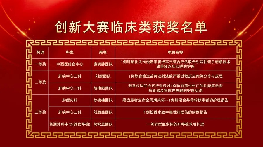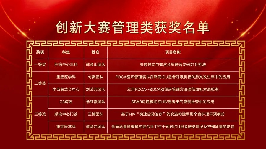 此次护理创新大赛三类项目的一等奖的获得者不仅摘取了大赛的桂冠,还给我们带来了精彩的展示,充分展示了佑安护理人在工作中善于探索、勇于创新的精神。相信在以后的工作中,护理创新之路一定会越走越宽、越走越远,成为佑安医院科技创新建设中一道最靓丽的风景!