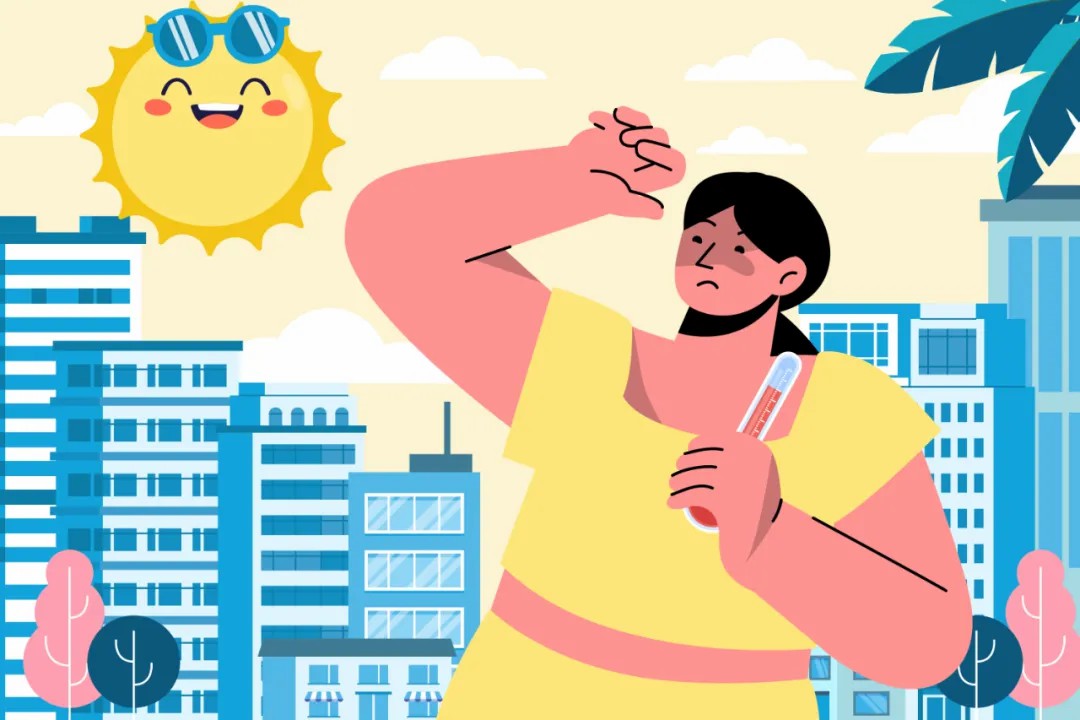 1、高温高湿天气易出汗,应该穿着轻薄、浅色、宽松的衣服,以利于汗液的蒸发。