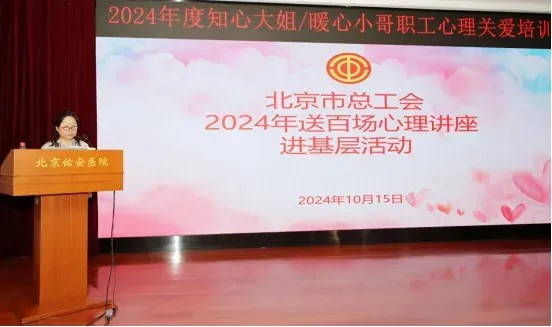 “对面坐,讲故事,说说自己的开心事……”2024年10月15日下午,北京佑安医院工会举办的知心大姐/暖心小哥心理关爱技能培训讲座《沟通艺术与冲突解决》。在讲师的引导下,场面温馨而快乐。为了提升“知心大姐/暖心小哥”的沟通能力,构建更加和谐的医疗工作环境,同时帮助职工获取心理能量及心理调适技能,以积极健康的心态面对和帮助身边职工应对工作与生活中的各种挑战。北京佑安医院工会依托北京市总工会2024年送百场心理讲座进基层活动,开展了这场受大家欢迎的心理关爱技能讲座活动。