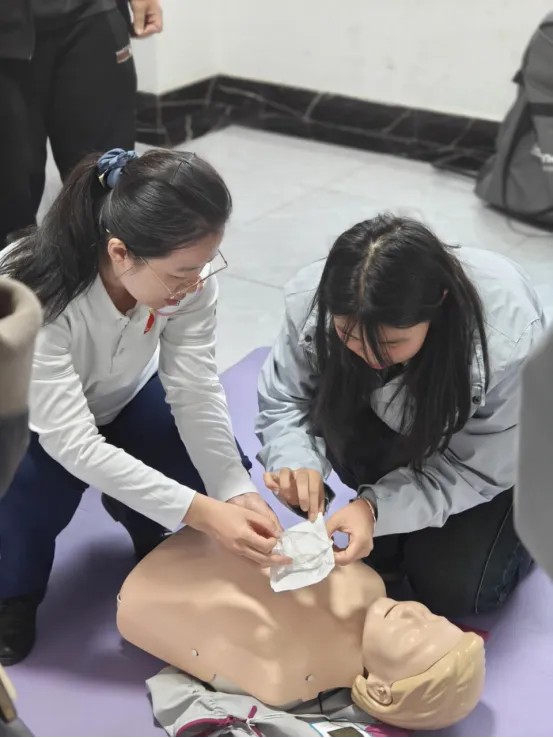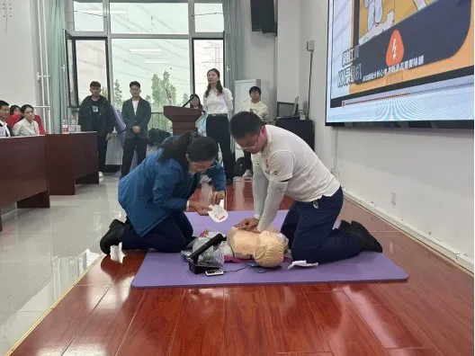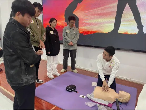 为了加深学员们的实践操作能力,讲座结束后,陈洪群、卢沐、田甜、李欢四位经验丰富的导师分别带领四组学生进行了心肺复苏实操演练。在导师们的悉心指导下,学员们认真操作,反复练习,逐渐掌握了心肺复苏的关键技能。